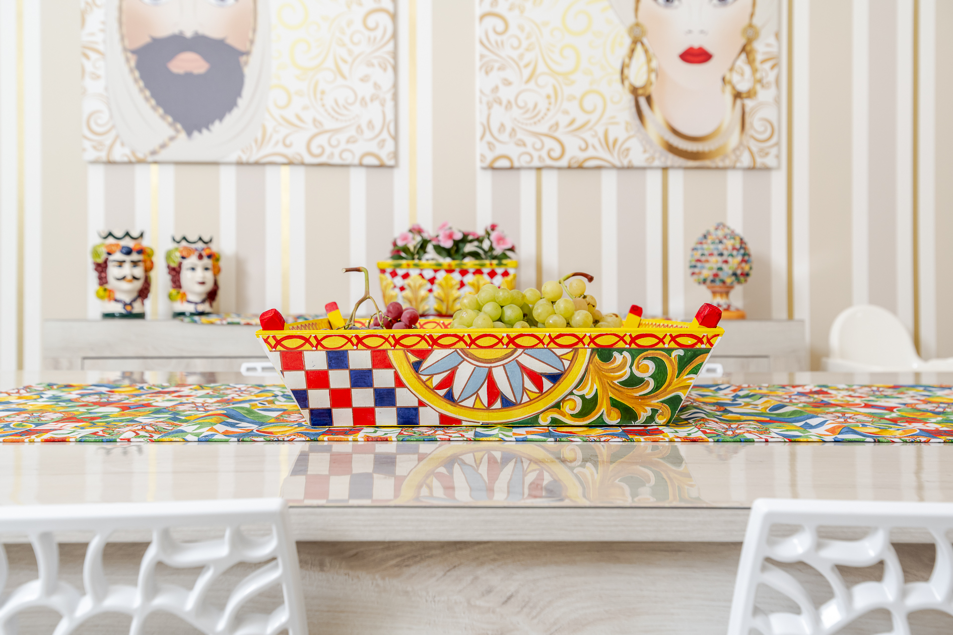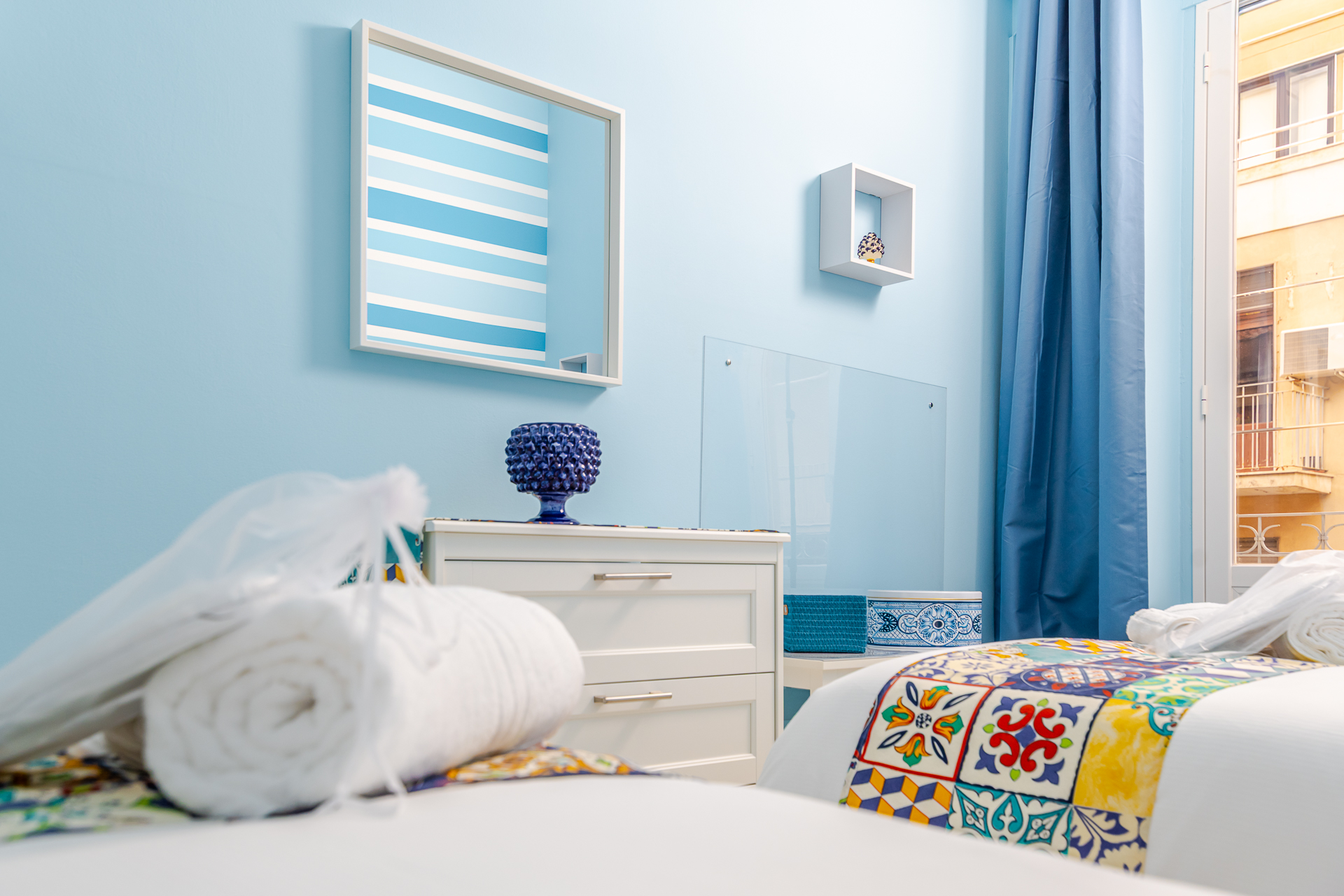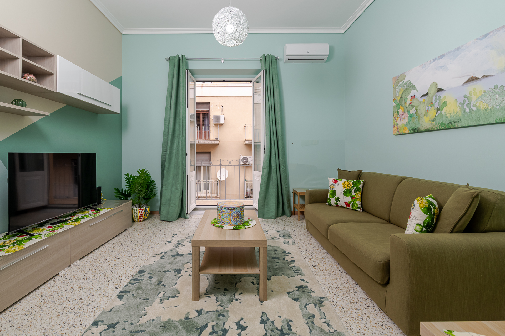 oven, mini-mixer, toaster, Nespresso coffee machine, kettle and whole cooking equipment. The Bathroom: with a spacious glass-shower decorated by Sicilian majolica’s tiles. The Laundry: with a proper washing machine. The apartment has two balconies, where seating during the warmest summer evenings and